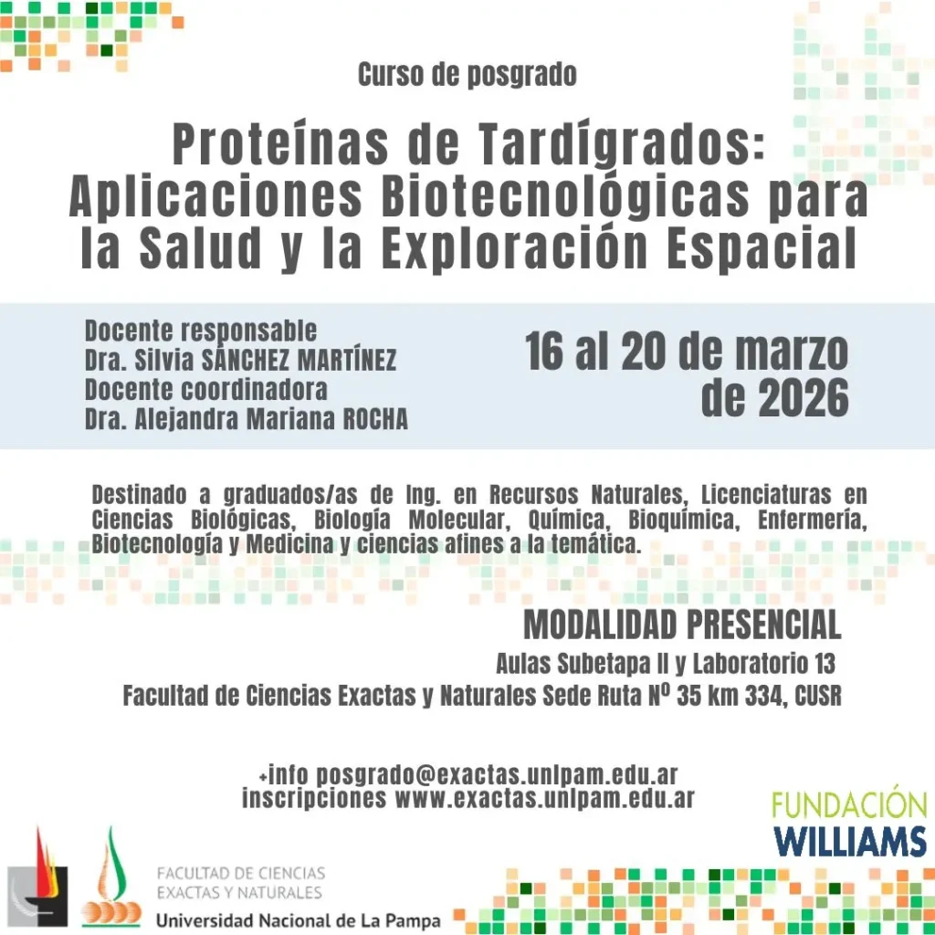 Proteínas de Tardígrados: Aplicaciones Biotecnológicas para la Salud y la Exploración Espacial Del 16 al 20 de marzo de 2026,