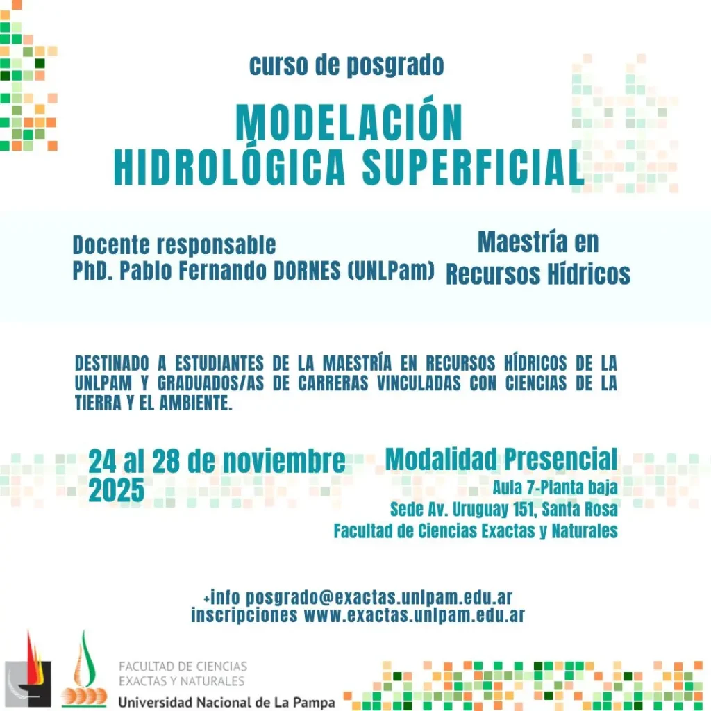 El curso está destinado a estudiantes de la Maestría en Recursos Hídricos de la UNLPam y a graduadas/os de carreras vinculadas con las Ciencias de la Tierra y el Ambiente.