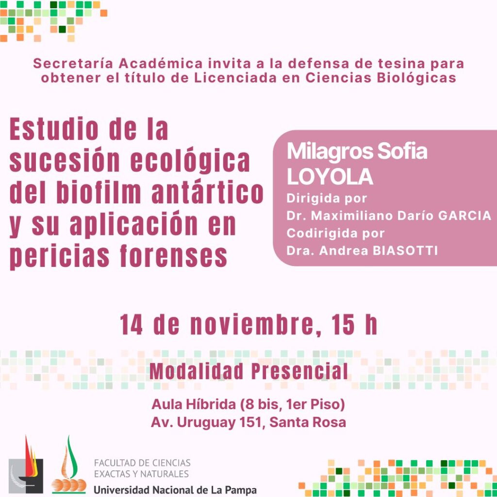 La Secretaría Académica invita a la defensa de tesina para obtener el título de Licenciada en Ciencias Biológicas. En esta